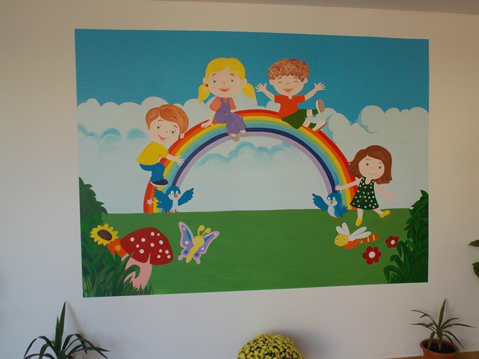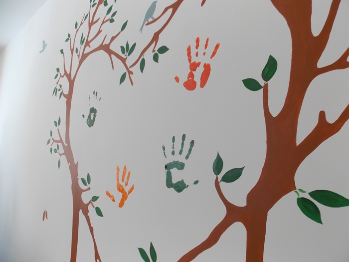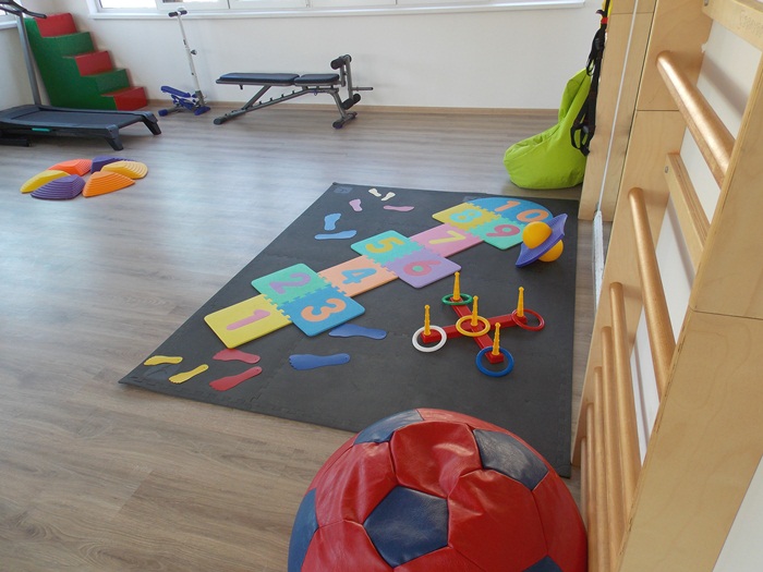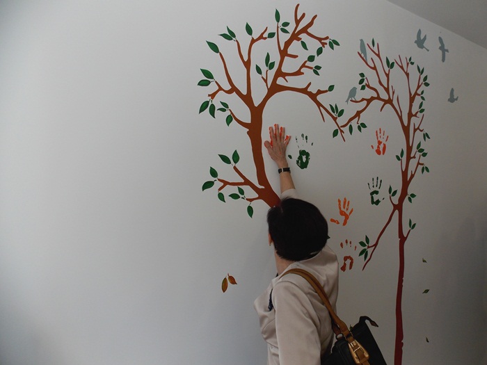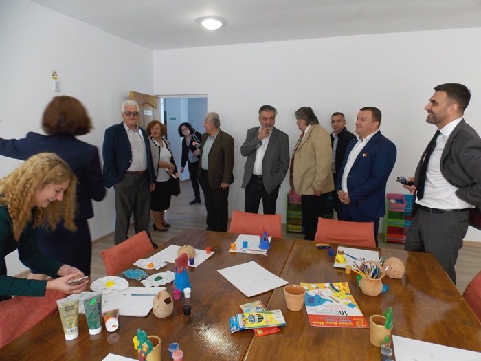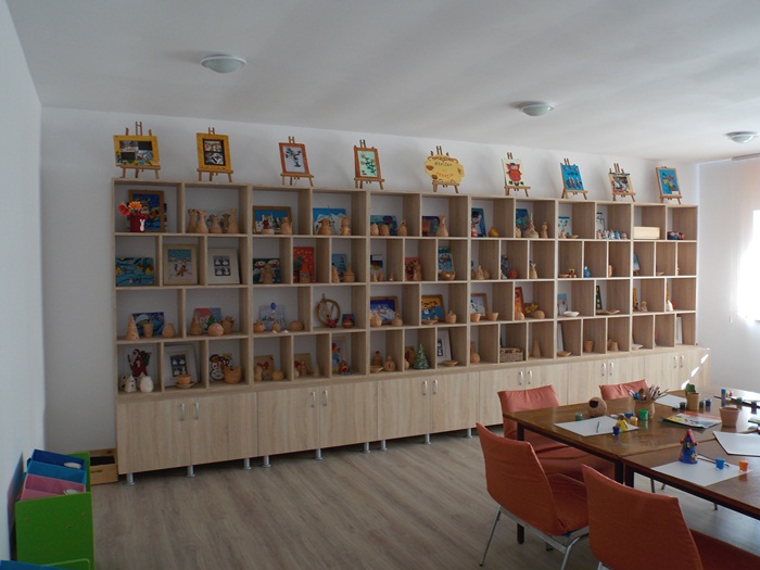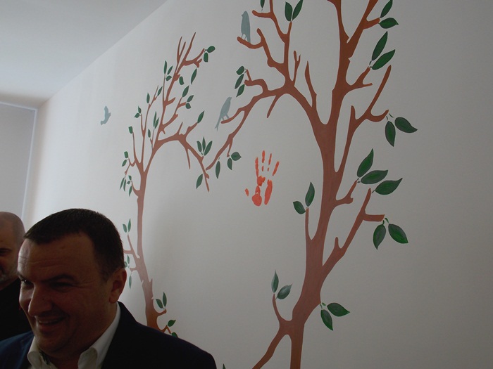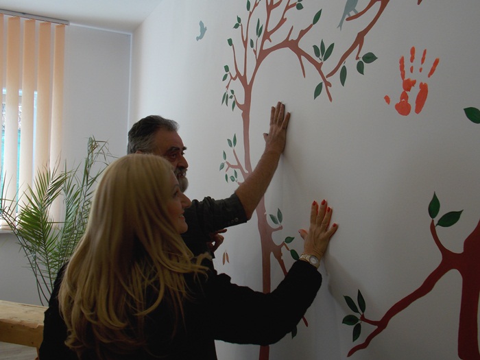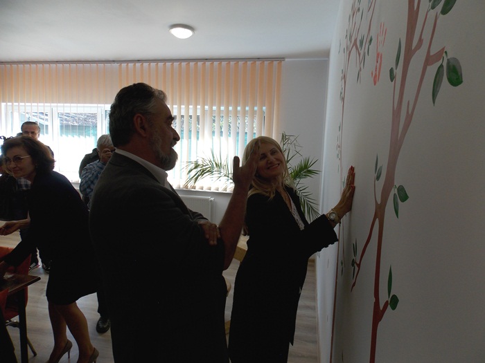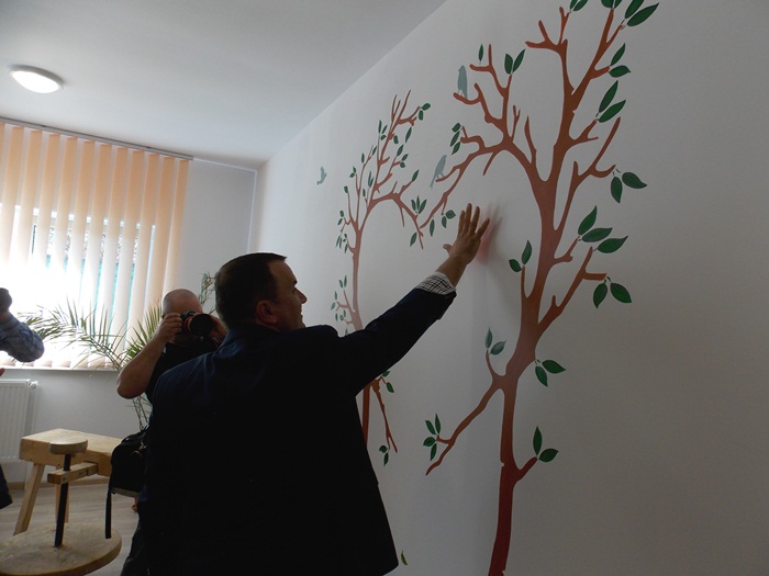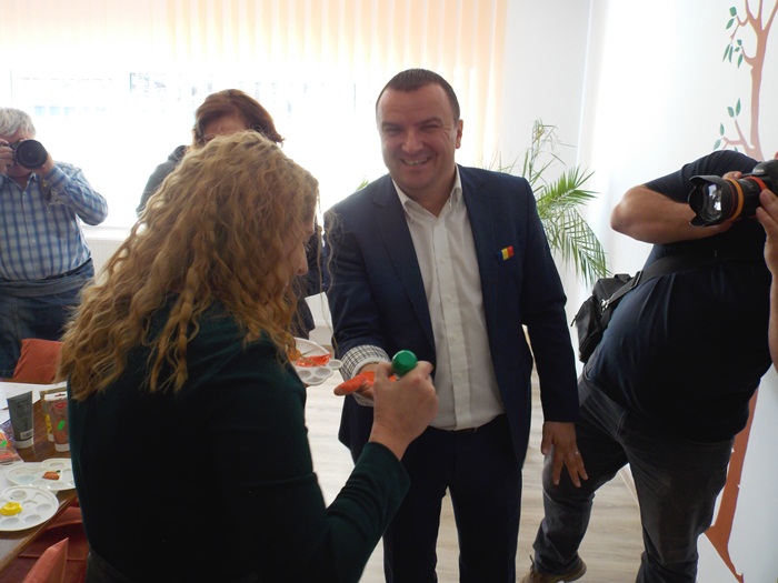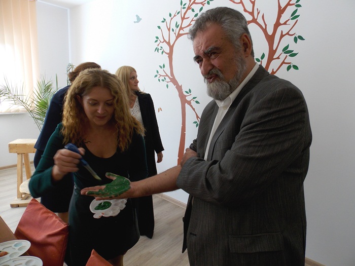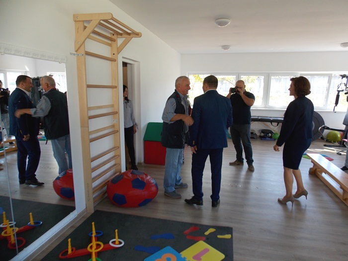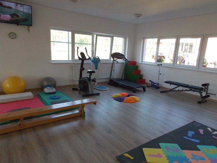 Noua cladire are o sala dedicata kinetoterapiei, iar una dedicata creatiei, in care oficialitatile au fost invitate sa lase urma palmelor pe ziduri.