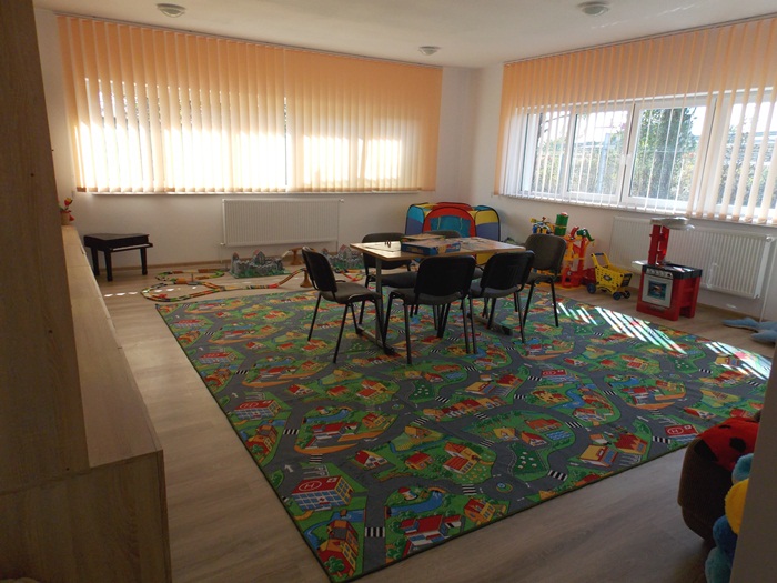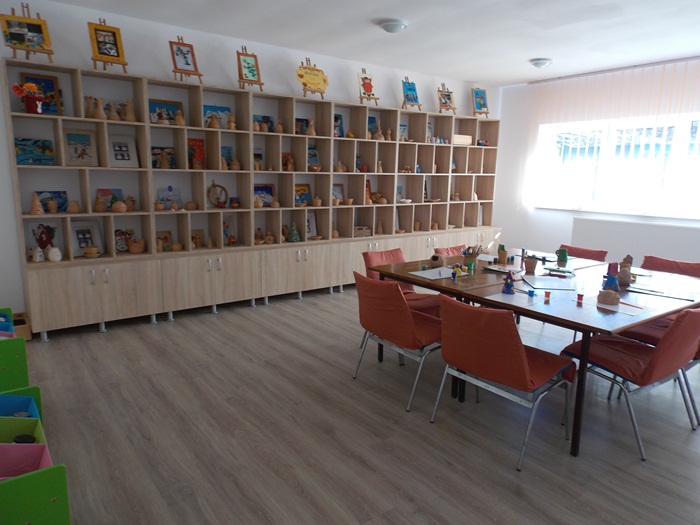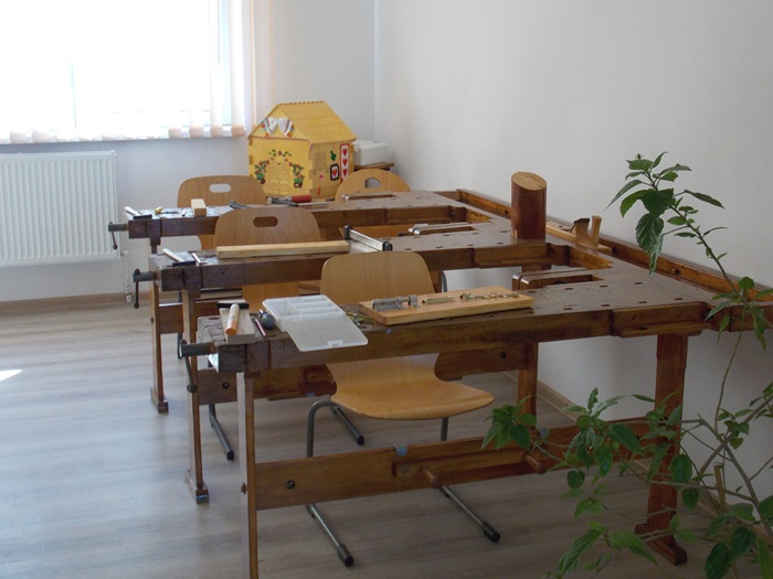 Pe langa acestea, in noul corp se mai afla o sala destinata atelierului de tamplarie si activitatilor de preprofesionalizare, o sala pentru ludoteca/stimulare senzoriala, un cabinet pentru terapie logopedica. Acestora li se adauga o camera tehnica, doua vestiare si doua bai.