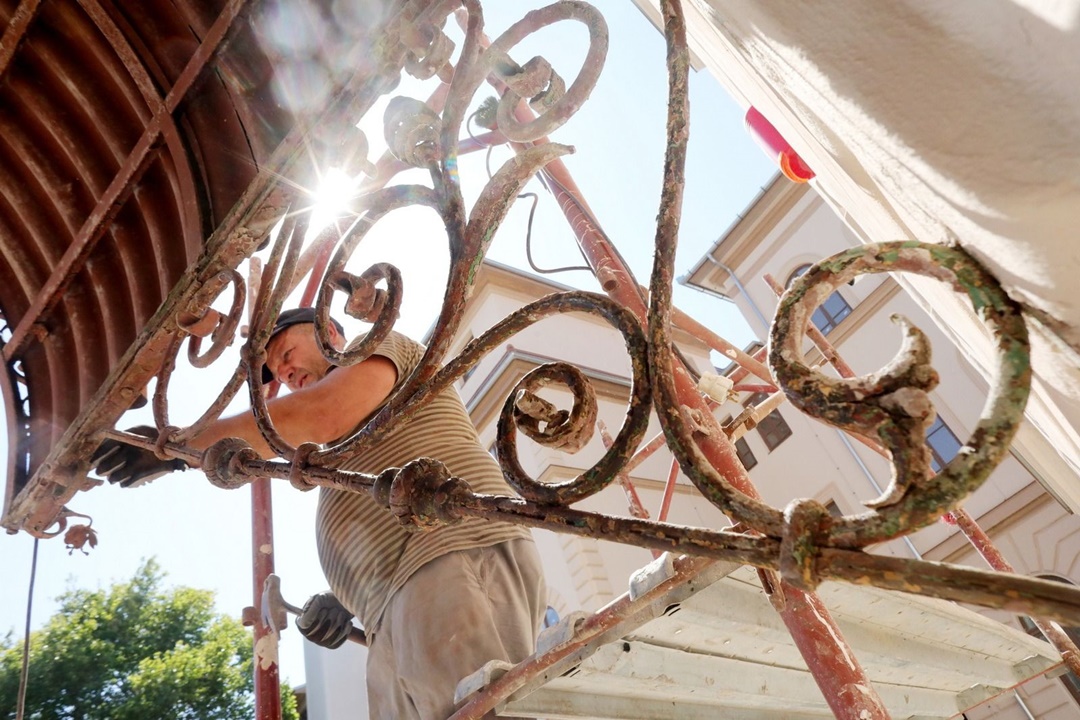 TIMISOARA. Dupa mai bine de doi ani de munca, restaurarea cladirii care adaposteste Colegiul Tehnic Emanuil Ungureanu se apropie de final. In aceste zile, se fac ultimele retusuri. A mai ramas cam o saptamana de munca, estimeaza constructorii.
