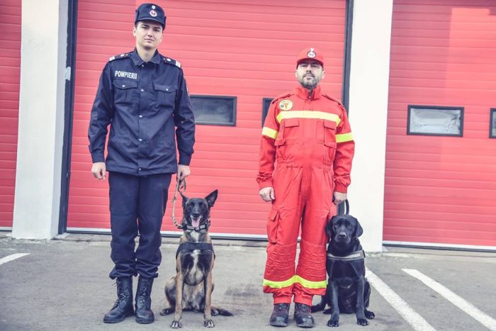 TIMISOARA. Doi caini de o inteligenta rara sunt de acum noii “colegi” ai pompierilor din Timis. Cei doi vor fi parteneri de nadejde in misiunile de cautare si salvare a persoanelor disparute sau prinse sub daramaturi.