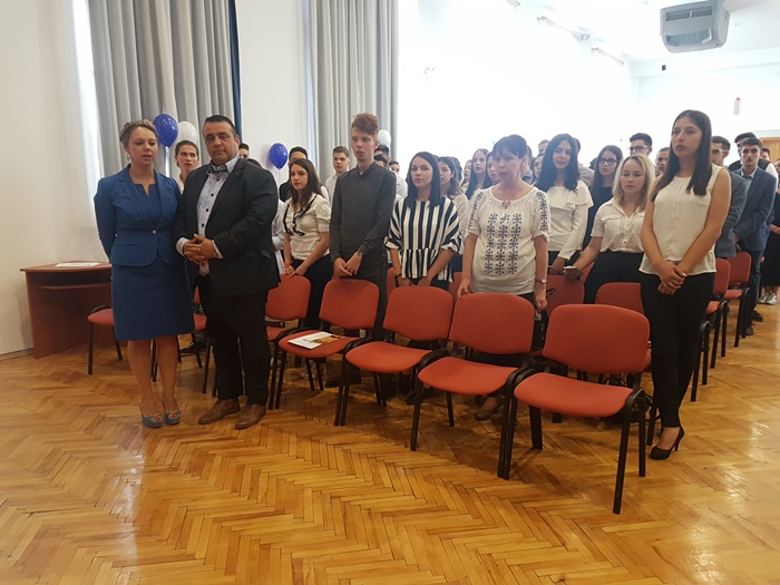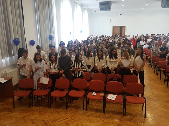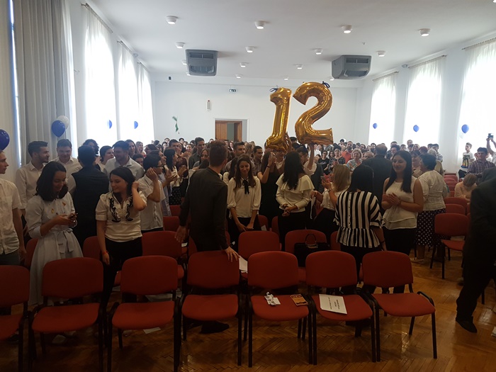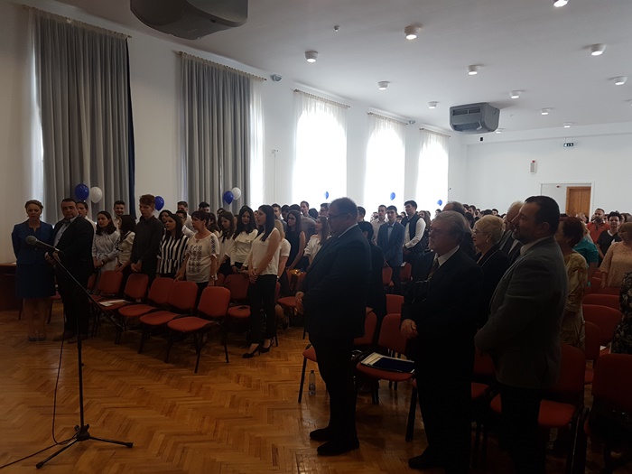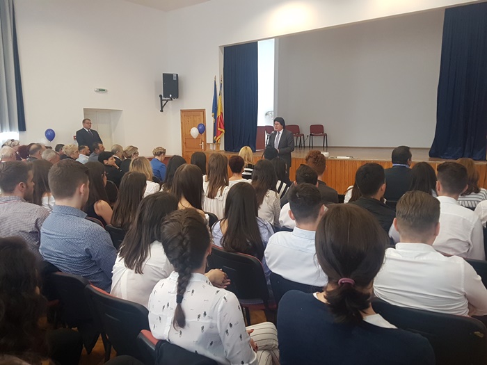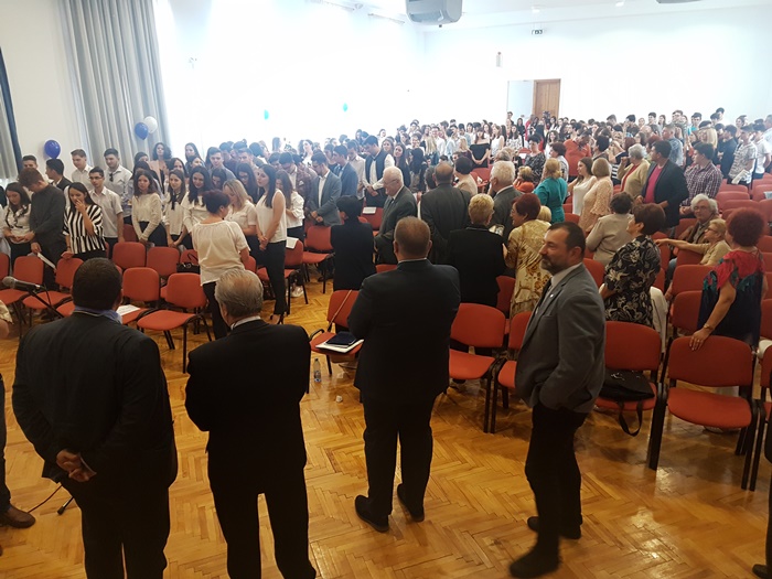 Festivitatea s-a incheiat cu un moment emotionant deopotriva pentru elevi si profesori, inmanarea cheii scolii de catre elevii care au terminat clasa a 12-a colegilor mai mici cu un an, in acordurile imnului Gaudeamus Igitur.