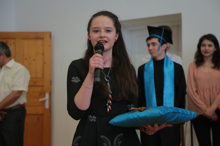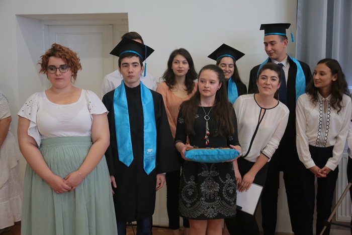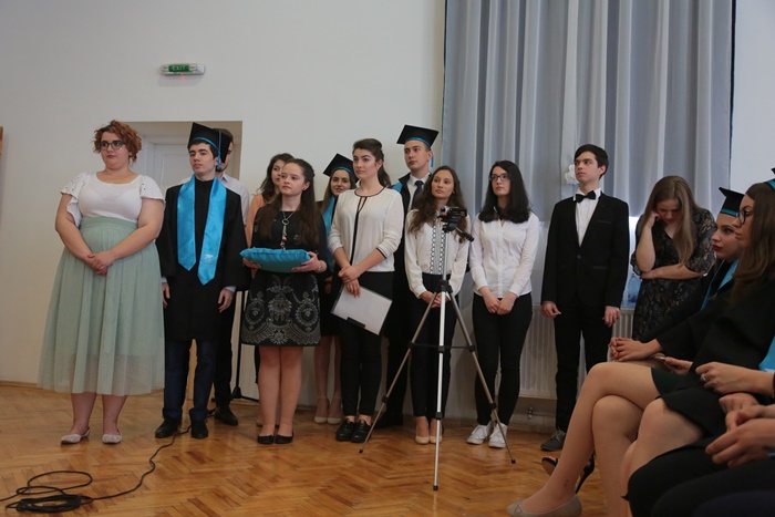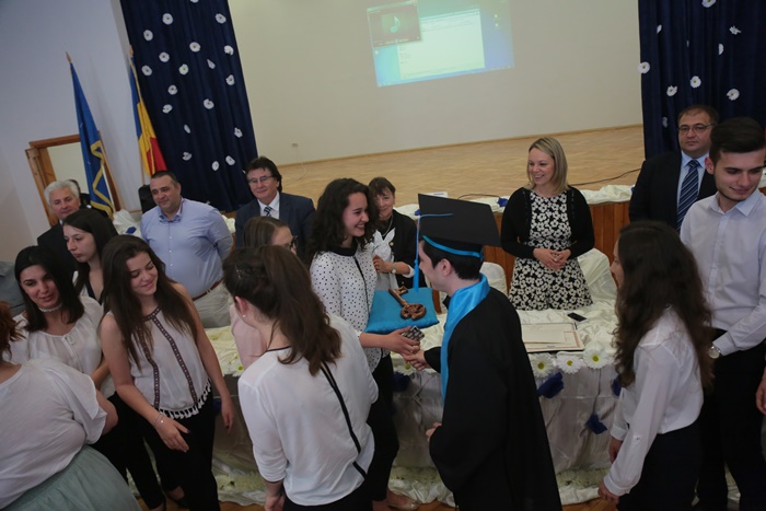 Festivitatea s-a incheiat cu un moment emotionant deopotriva pentru elevi si profesori, inmanarea cheii scolii de catre elevii care au terminat clasa a 12-a colegilor mai mici cu un an, in acordurile imnului Gaudeamus Igitur.