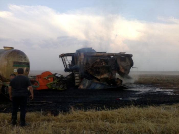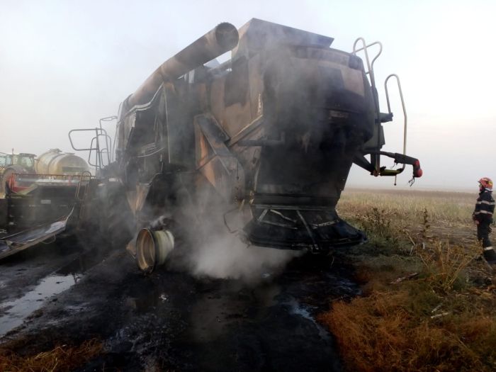 S-a intamplat vineri seara in localitatea Carani, una dintre comunele cele mai dezvoltate agricol din judetul Timis. Utilajul se afla pe camp, la treierat cand a fost cuprins de flacari.