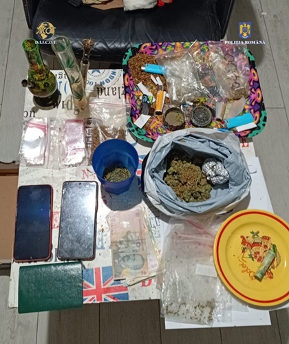 In urma perchezitiilor desfasurate miercuri dimineata, au fost descoperite si ridicate 1 kilogram de cannabis, 800 de grame de hasis, 70 de grame de cocaina, 20 de grame de cristal, doua cantare electronice si doua grindere. De asemenea, au fost descoperiti si ridicati 1500 de euro si 18.100 de lei.