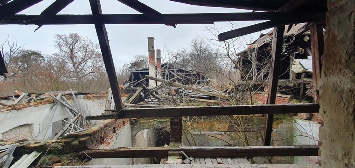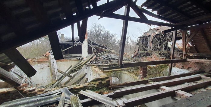 Rand pe rand, stresinile au cedat, la fel si acoperisul, iar acum din splendida cladire de altadata au mai ramas doar bucati de ziduri scorojite si schimonosite de rupturi, ce risca si ele sa dispara, inghitite de vegetatia salbaticita.