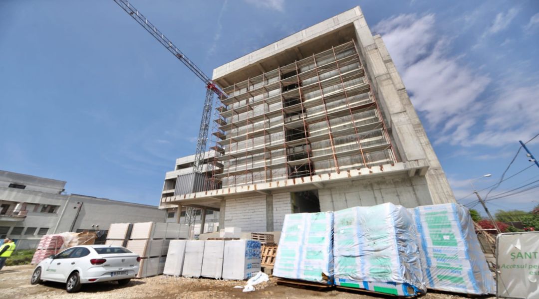 TIMISOARA. Structura de rezistenta a cladirii e gata de luni bune, s-au montat toate geamurile, iar inca din februarie se lucreaza la finisaje, instalatii interioare si la realizarea utilitatilor la noua maternitate a Spitalului Judetean Timisoara.
