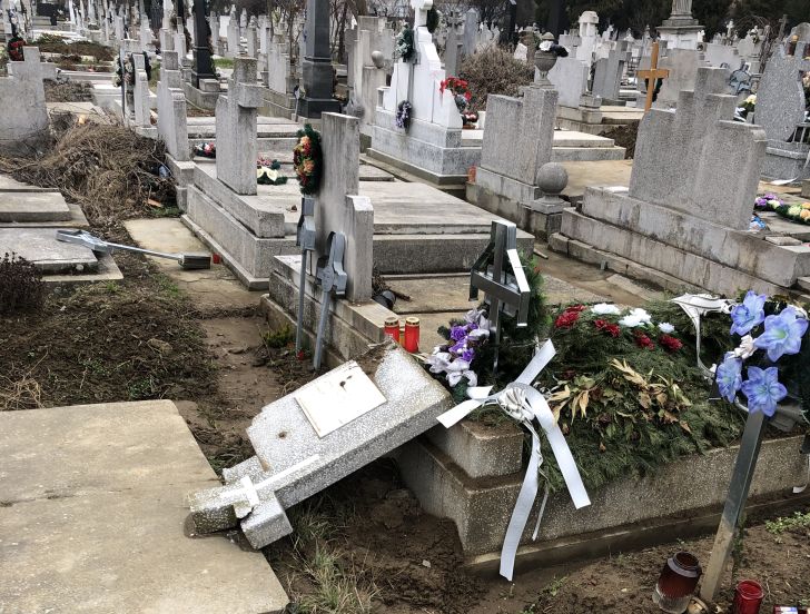 CITESTE SI: Dezastru intr-un cimitir din Timisoara. Pietrele funerare de pe mai multe morminte, vandalizate. Foto