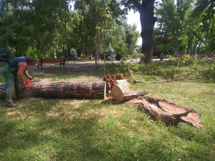 Din imagini se poate vedea ca acel copac era putrezit pe interior, iar bucati de lemn s-au imprastiat in zona in care a cazut trunchiul.