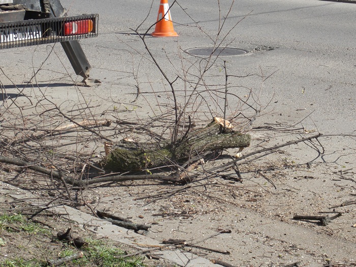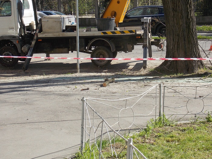 Copacul ales pentru demonstratie a fost ulmul din fata Directiei Apelor Banat. Crengi uscate plecate de la baza trunchiului, dar si din coroana, sau care au fost taiate gresit in trecut au cazut rand pe rand sub drujbele muncitorilor angajati de Primarie.