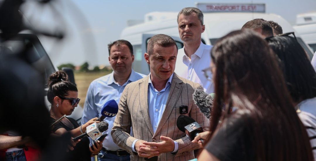 TIMISOARA. Consiliul Județean Timiș a finalizat cumpărarea a 29 de microbuze electrice nou nouțe, ce vor fi folosite pentru transportul elevilor. Autovehiculele au fost predate, marti, primariilor la Timisoara, la Aerodromul Cioca.