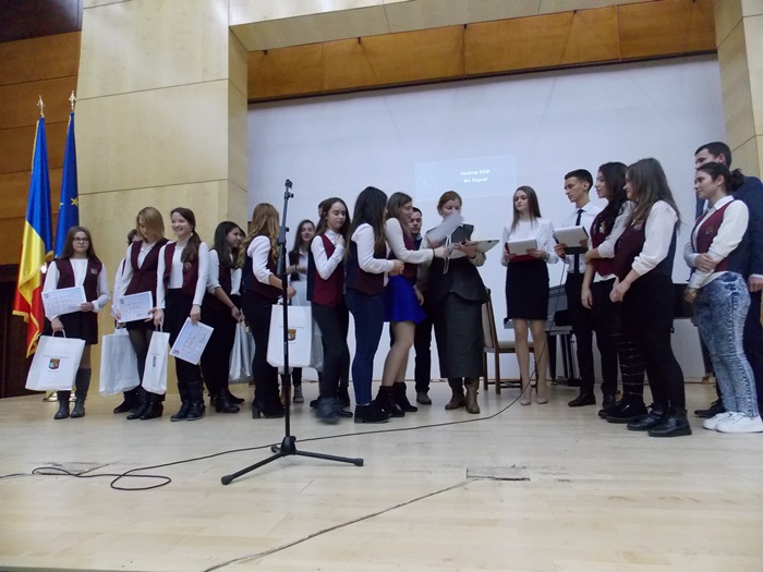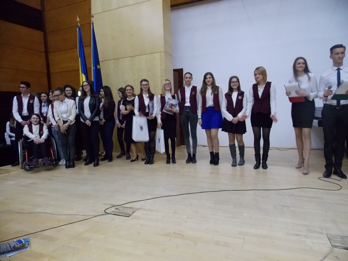 ” Am fost numita eleva anului cred ca pentru rezultatele din toti anii, acumulate, si in special pentru proiectul de la Economie, care dorea crearea de manageri de top, in regiunea de nord-vest a tarii. Echipa mea a obtinut locul 2, am avut o firma in domeniul consultantei politicie, doream sa facem campanii, sa facem tot ce se leaga de ascensiunea politica a politicienilor nostri. Acest proiect ne-a fost foarte folositor in cultivarea unor abilitati care ne vor fi foarte folositoare in viitor si a fost o munca de echipa, in care a fost o placere sa lucrez cu colegii mei”, a spus Amelia Toth, una dintre cele doua eleve ale anului.