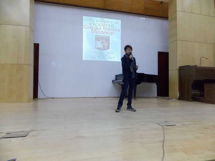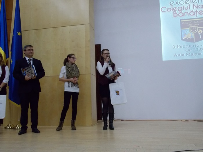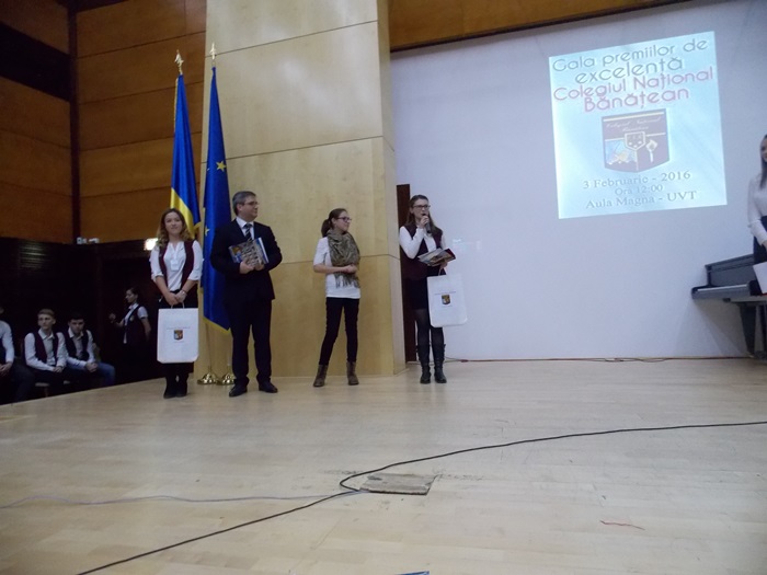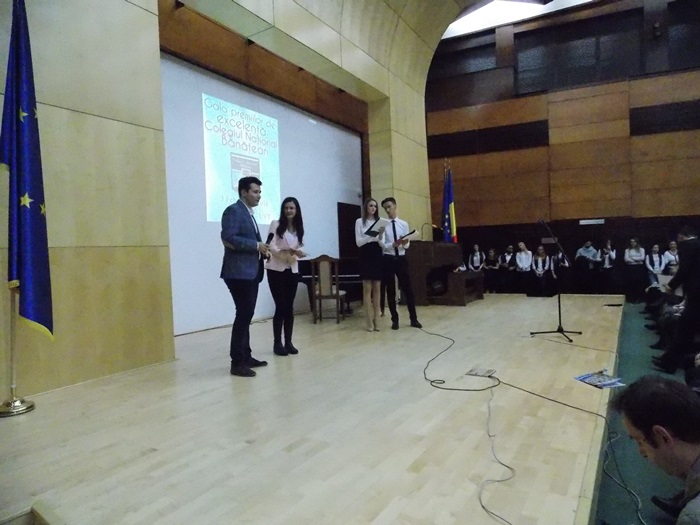 “Suntem la a treia editie a acestei Gale de Excelenta a CNB, scopul acestei actiuni este acela de a premia elevii care s-au remarcat prin rezultatele excelente de-a lungul anului trecut calendaristic, pornind de la ideea ca un elev valoros este acela care stie sa imbine mai multe tipuri de activitati, un elev valoros este acela care , pe langa nota 10 la bacalaureat, este si un bun cetatean. Pentru a treia oara, elevii desemnati de catre Colegiul National Banatean sunt inscrisi la Universitatea de Vest fara examen”, a declarat Sorin Ionescu, directorul Colegiului National Banatean.