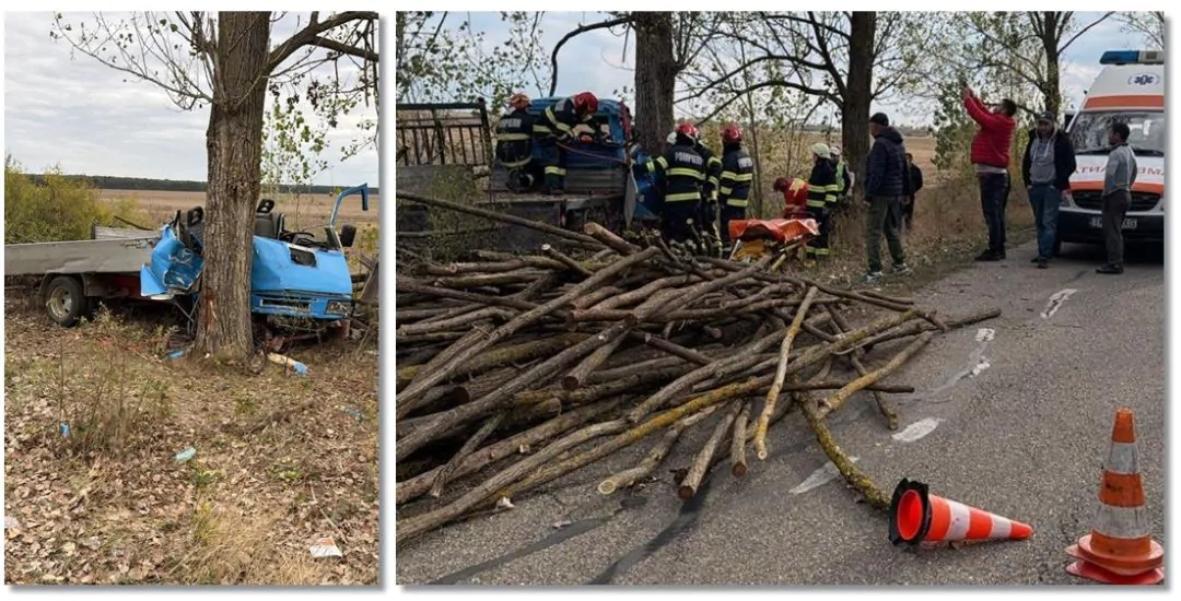 În accident au fost implicate 2 persoane care se aflau într-o camionetă ce transporta lemne. Autovehiculul a părăsit partea carosabilă și s-a lovit de un copac. În urma impactului, pasagerul din dreapta (un tânăr de 16 ani) a rămas încarcerat.