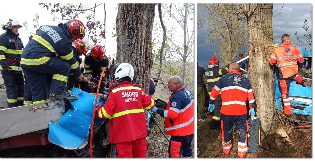 Băiatul de 16 ani a rămas blocat în caroseria zdrobită, iar pentru recuperarea lui a fost nevoie de intervenția echipajului de descarcerare. La locul accidentului a fost chemat și elicopterul SMURD, care l-a dus pe copil la spital la Timișoara.