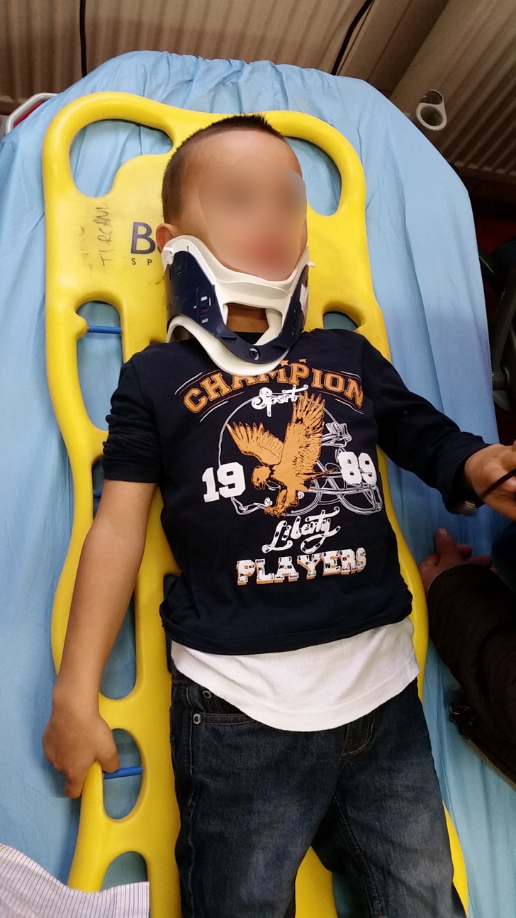 Micutul a fost preluat de o ambulanta si transportat la spital pentru investigatii.