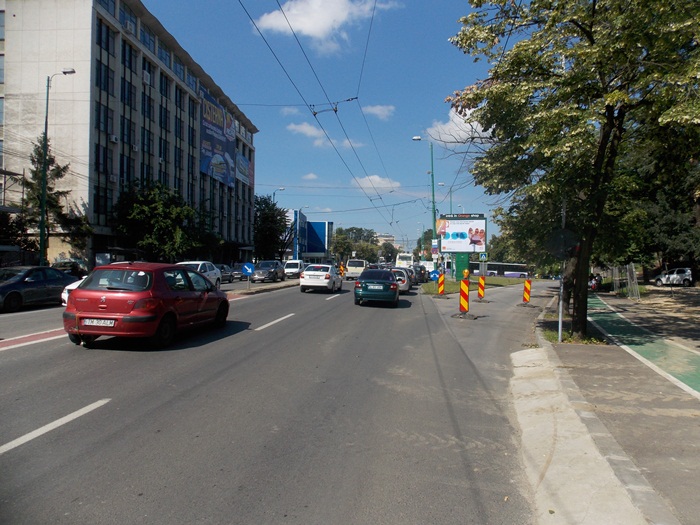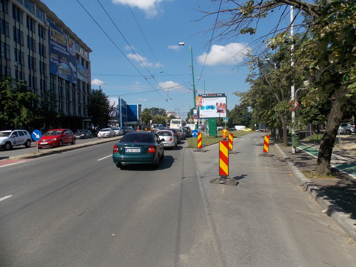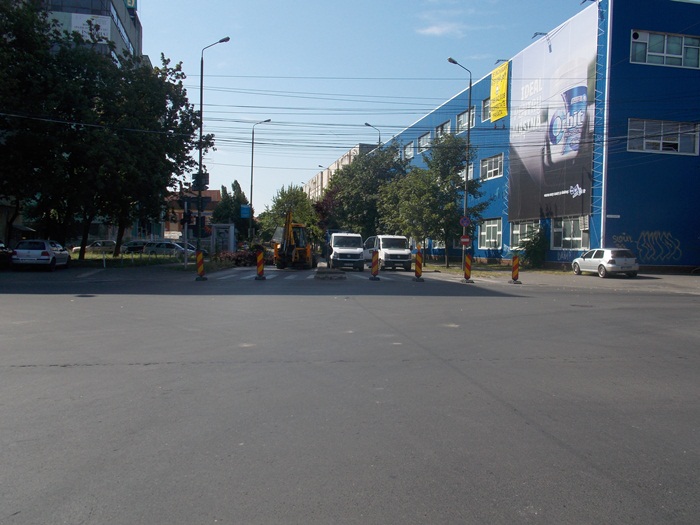 – la intersectia cu strada Jiul ce se largeste la 5 benzi si insula directionala centrala.