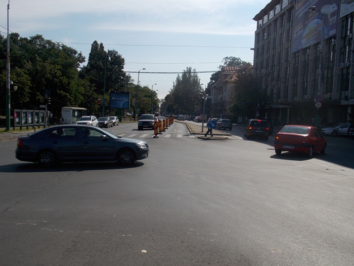 In intersectia dintre Strada Jiul si Bulevardul Republicii au fost create 5 benzi de circulatie. Banda a 5-a are rolul de banda de viraj la dreapta.