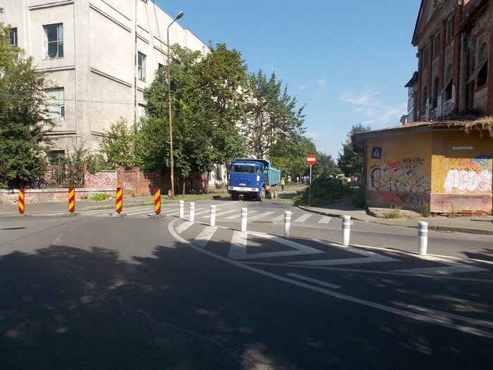 Sensurile de circulatie sunt delimitate de o insula (insula care se continua pâna in intersectia cu Bulevardul Republicii). Insula realizata are si rolul de peron pentru pietoni.