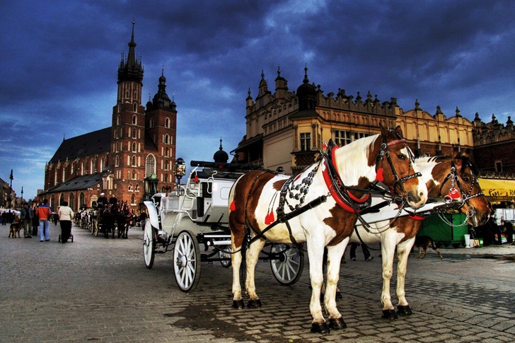 In Cracovia toate drumurile duc la Piata Veche – aici locuitorii si turistii se simt in largul lor. Aceasta piata, considerata cea mai mare a Europei este dominata de marea Biserica gotica Sfanta Maria, cu vestitul sau altar sculptat in lemn de tei, cel mai valoros altar gotic din Europa. Tot aici se poate vizita şi cea mai veche şi mare universitate din Polonia, Universitatea Jagello.