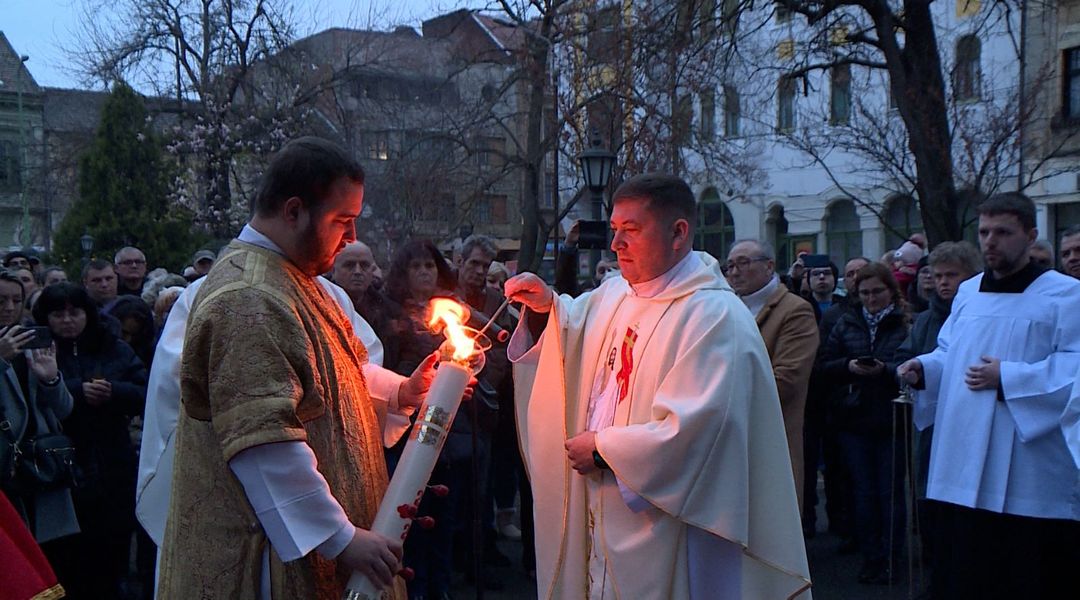 La miezul noptii, credinciosii catolici vor lua lumina, apoi va avea loc procesiunea de Inviere.