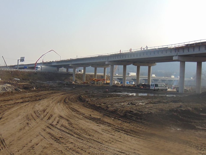„Lucrarile pe lotul 4 al Autostrazii Lugoj-Deva (22,139 km) continua intr-un ritm bun. La nodul Soimus montarea grinzilor se apropie de final si se continua instalarea predalelor.