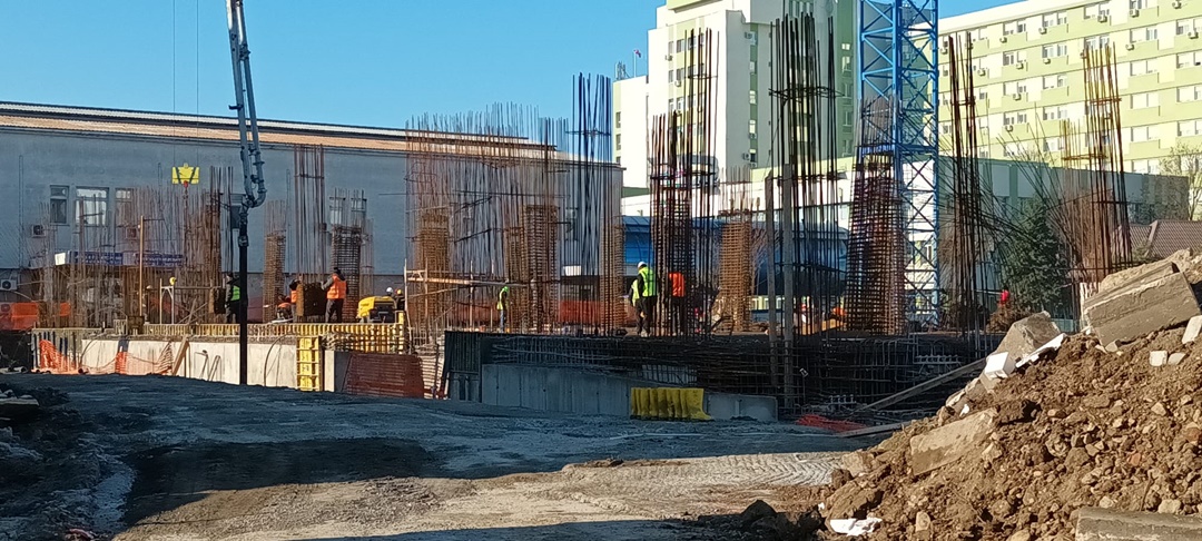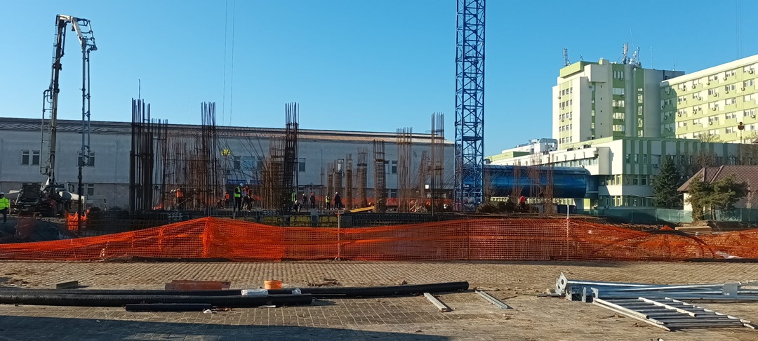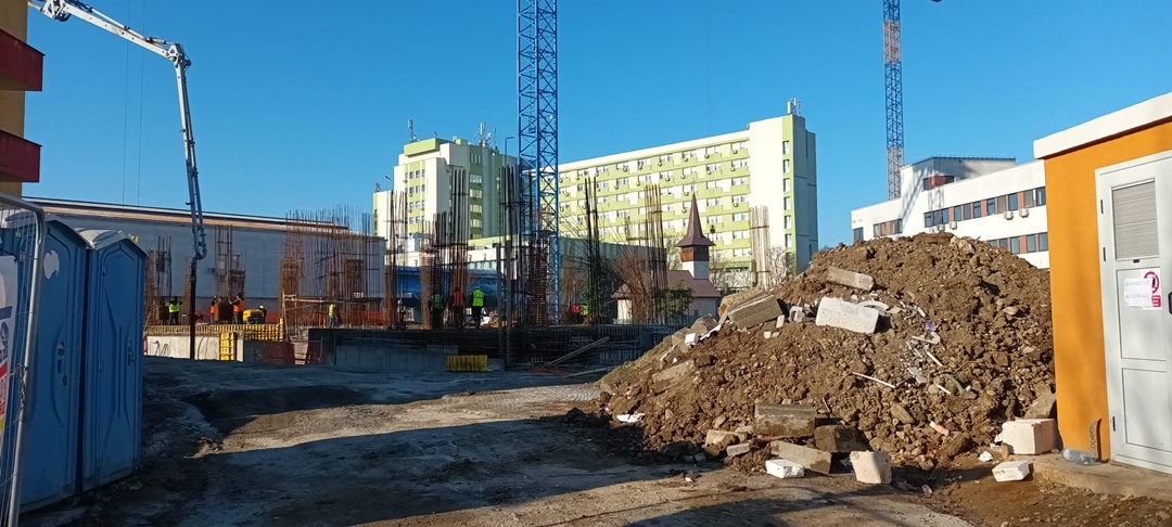 TIMISOARA. Continua sa se lucreze in ritm alert pe santierul noului corp de cladire de la Spitalul Judetean Timisoara care se ridica intre Ortopedie si noua Maternitate Bega.