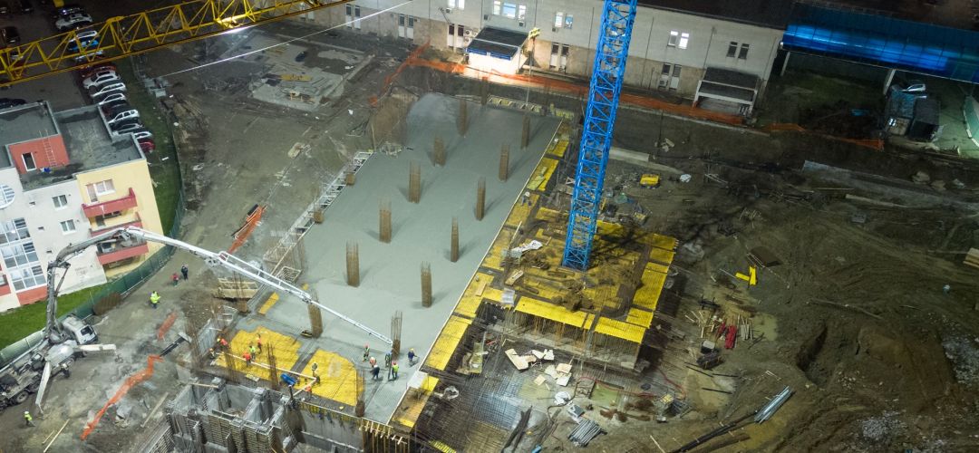 Muncitorii firmei Erbasu, care se ocupa de edificarea infrastructurii medicale de la Timisoara, lucreaza de mult timp atat ziua, cat si noaptea, si chiar in zilele de weekend, astfel ca pregatirile, fundatia si armatura pentru primul nivel s-au succedat cu mare viteza.