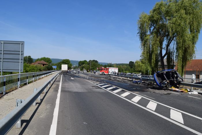 TIMISOARA. Scene teribile vineri dimineata. Un barbat de 40 de ani si-a omorat sotia, in casa lor din Arad, apoi s-a urcat la volan si a gonit nebuneste pana in Hunedoara, unde a intrat cu toata viteza, frontal, intr-un tir. Soferul a pierit pe loc in masina facuta praf.
