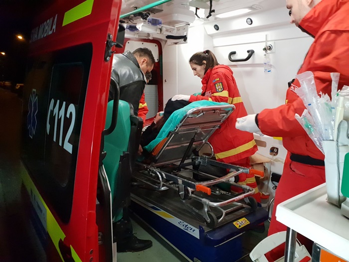 Femeia a fost incatusata, urcata in autosanitara medicilor si transportata sub paza la Spitalul Municipal din Timisoara, unde a ramas internata.