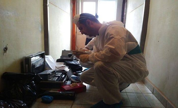 Criminalistii au prelevat probe din locuinta, iar medicii legisti au preluat cadavrul pentru autopsie.