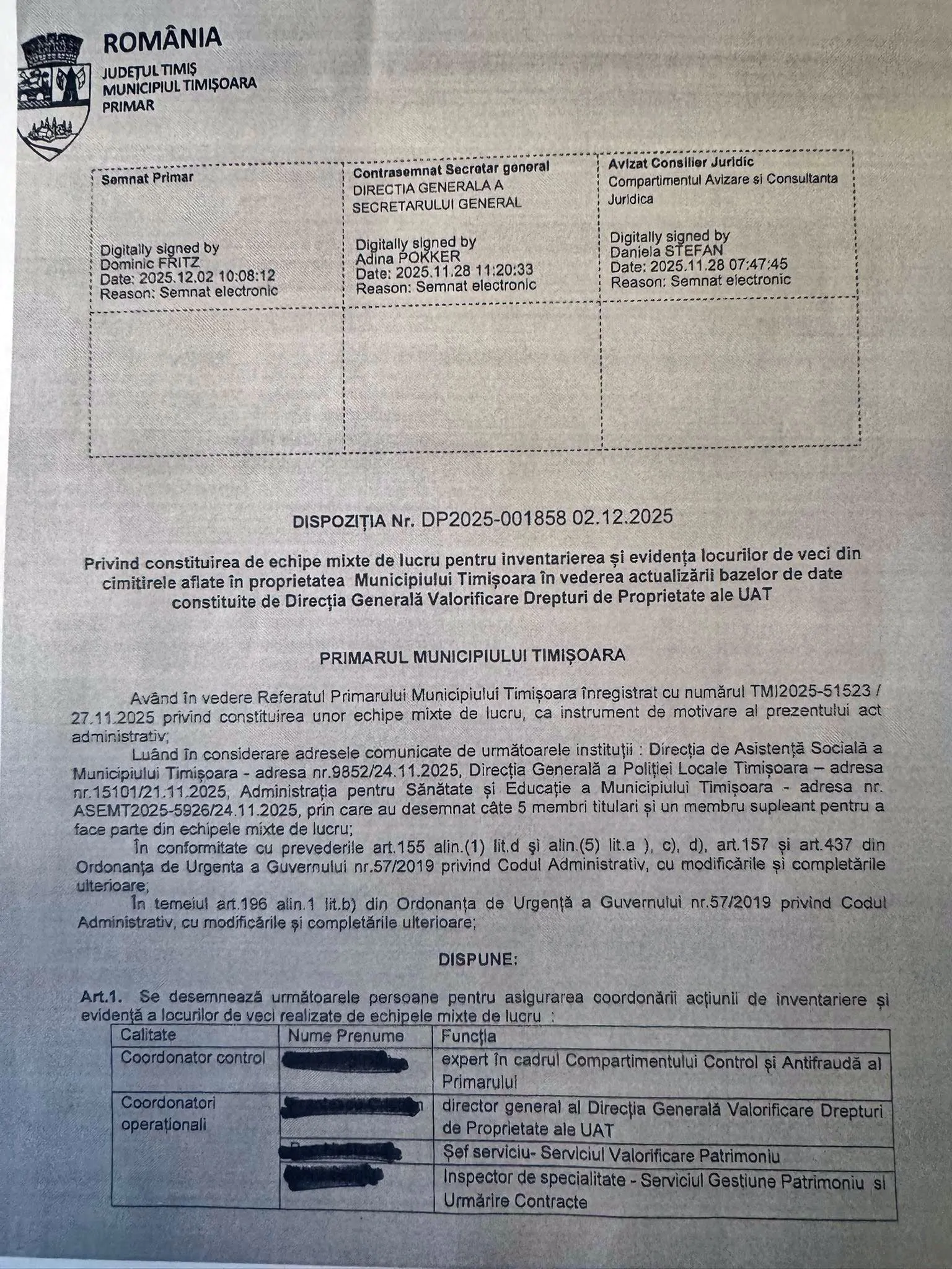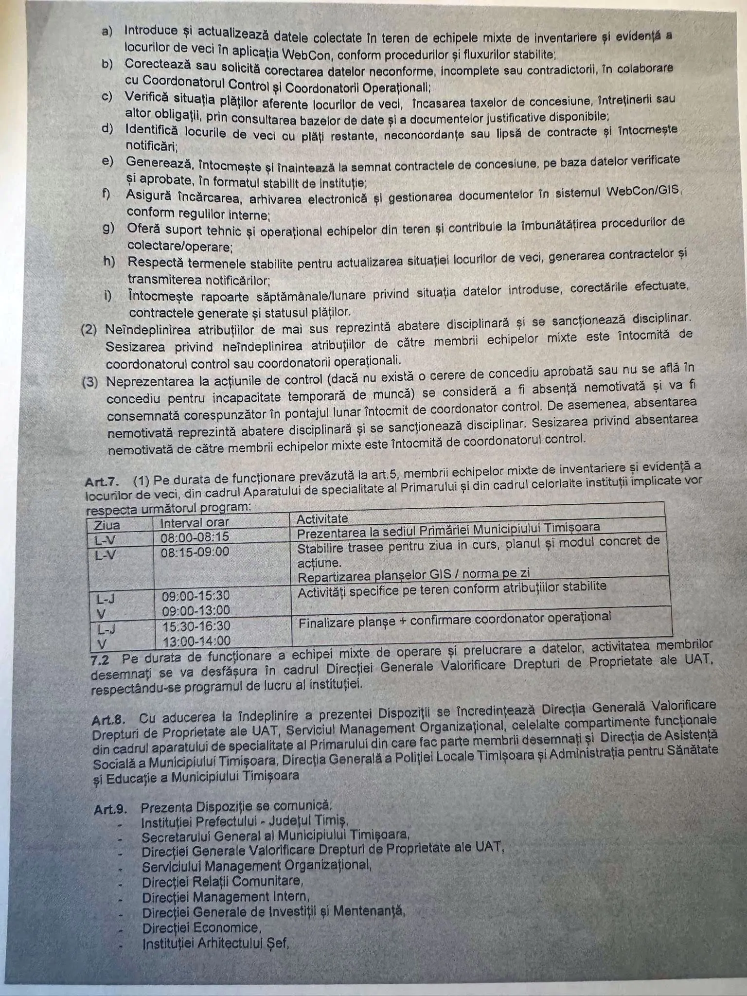 Demersul este unul abuziv, în contextul în care cei vizați nu au nicio atribuție în fișa postului în legătură cu acest tip de acțiune, iar modul în care au fost desemnați să execute Dispoziția primarului, rămâne o nebuloasă!