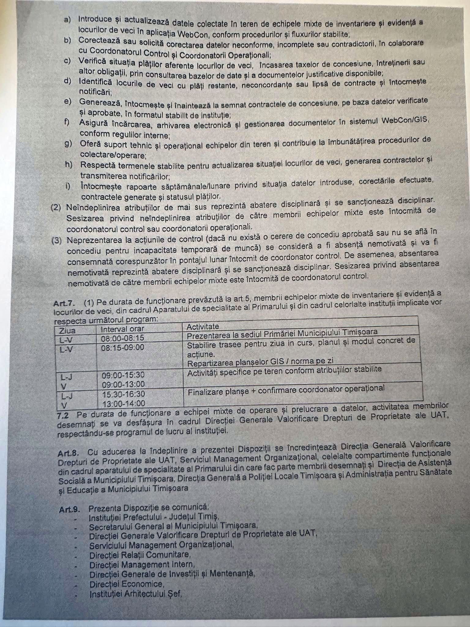 Demersul este unul abuziv, în contextul în care cei vizați nu au nicio atribuție în fișa postului în legătură cu acest tip de acțiune, iar modul în care au fost desemnați să execute Dispoziția primarului, rămâne o nebuloasă!