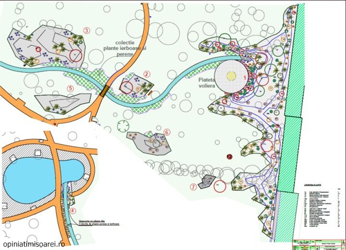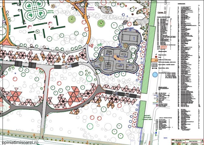 “Vor fi redesenate absolut toate aleile, raman doar 10 metri in fata, parcul isi schimba complet infatisarea. Vor fi alei noi, nu vor mai fi linii drepte, ci in general linii curbe. O sa fie doua sau chiar trei straturi, unele cu nisip stabilizat, altele cu pavaj, o sa mai fie o solutie cu beton. Vor fi gradini tematice, cea italiana, cea greceasca, cu amfiteatru, gradina spaniola, gradina englezeasca si altele. O sa fie un teren de sport, teren de fitness, pista de biciclete pentru bikeri, pista de skateboard, o sa fie zona de odihna cu WiFi, cu banci, unde lumea va putea sta sa odihneasca si va avea acces la internet. O sa fie o zona de lacuri, doua lacuri pe care vom avea nuferi, doua poduri, o stancarie destul de mare unde vor intra 500 de tone de piatra, in zona garajelor, un parau, care va ajunge in luciul de apa, in cele doua lacuri. De acolo o sa fie aprovizionat si sistemul de irigare”, explicau reprezentantii Primariei la predarea amplasamentului pentru pornirea lucrarilor.