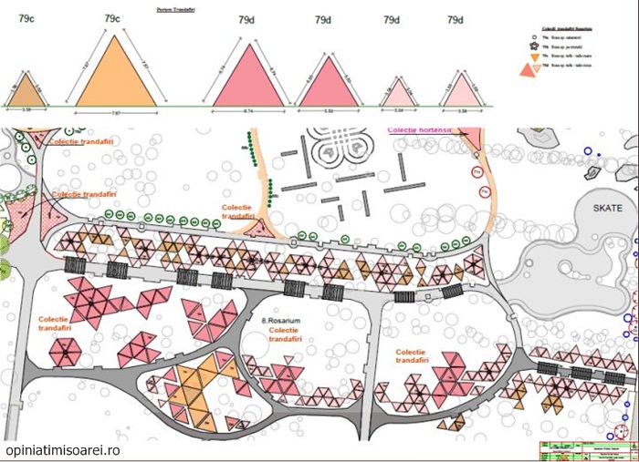 Parcul va avea, totodata, si mai multe soiuri de trandafiri, in zona rosariului, dar asta abia dupa ce va fi inaugurat, in functie de cum va permite vremea plantarea firelor de roze.