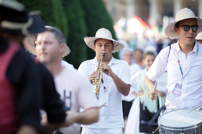 Dupa parada, in parcul Parcul Rozelor, incepand cu ora 19.30, dupa alocutiunile de salut ale autoritatilor locale se va da startul muzicii si dansului folcloric de pretutindeni. Vor urca pe scena: „Ghiocelul” – Giroc, „Edelweiss” – Deta, „Apateana” si „Iorgovanul”– Arad, „Mladost” – Timisoara, „Lugojana” – Lugoj, „Bihorul”- Oradea, „Transilvania” – Baia Mare, Academia de Danzas y Compañía Internacional „Desde el Alma” – Argentina, „Ciprian Porumbescu” – Suceava,Ġzmir Hancı Folklor ve Müzik Gençlik Kulübü (AegeanFolk) – Turcia, „Cindrelul – Junii Sibiului” – Sibiu, Grupo Folclórico de Viana do Castelo – Portugalia, „Muresul” – Targu Mures.