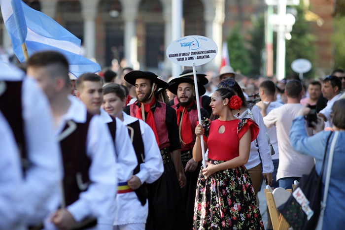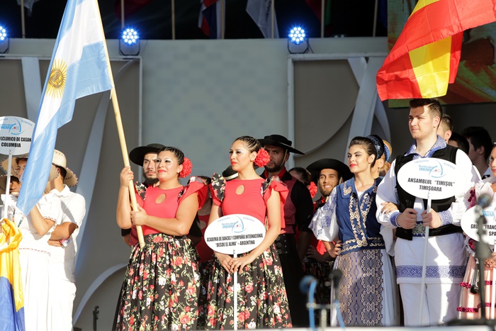“Editia din acest an este superba, la fel ca vremea, care tine cu noi. Avem parte de un nou festival la inaltime. Merita toate aplauzele acesti artisti minunati, care au grija sa duca mai departe traditiile din tarile lor. Cred ca a fost o bucurie pentru miile de timisoreni care au vazut policromia costumelor la parada. Timisoara va fi Capitala Culturala a Culturii in 2021 si nu e intamplator ca a castigat titlul in competitie cu alte 13 orase. Unul dintre motive este si diversitatea culturala in Timisoara chiar exista un plus cultural sanatos alaturi de un puls economic. Va rog sa va bucurati de acest festival cu 35 de ansambluri de pe 3 continente”, a spus primarul Timisoarei, Nicolae Robu.