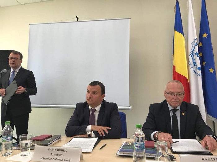 Presedintele Consiliului Judetean Timis, Calin Dobra, s-a intalnit la Arad cu omologi ai sai din Serbia si Ungaria si au pus la punct o noua colaborare in cadrul regiunii Dunare-Cris-Mures-Tisa.