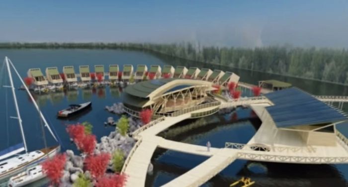 Casutele in care va veti putea caza sunt numite bungalouri, iar acestea sunt legate intre ele prin faleze suspendate. Vor fi si pontoane pentru pescari, dar si locuri special amenajate pentru ambarcatiuni.