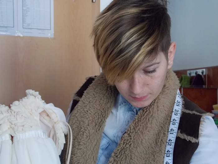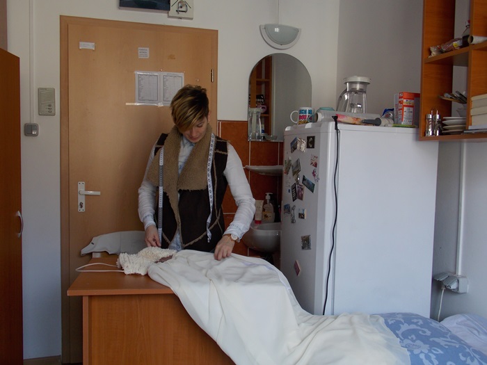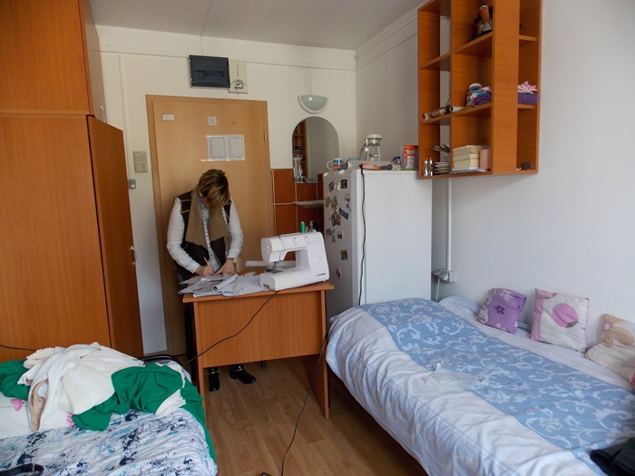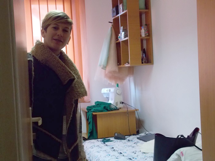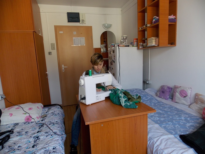 Din mana studentei ies hainute minunate, facute cu migala si foarte mult suflet. Rochii lungi, elegante si vaporoase, tricouri, fuste si rochite casual, papioane de diferite culori stau intinse peste tot in camera. Dulapul este indesat cu haine frumos aranjate pe umerase, birourile sunt pline de schite si reviste de moda, si peste tot vezi pungi cu materiale: mai mult sau mai putin colorate, mai subtiri sau mai groase, cu modele sau fara.