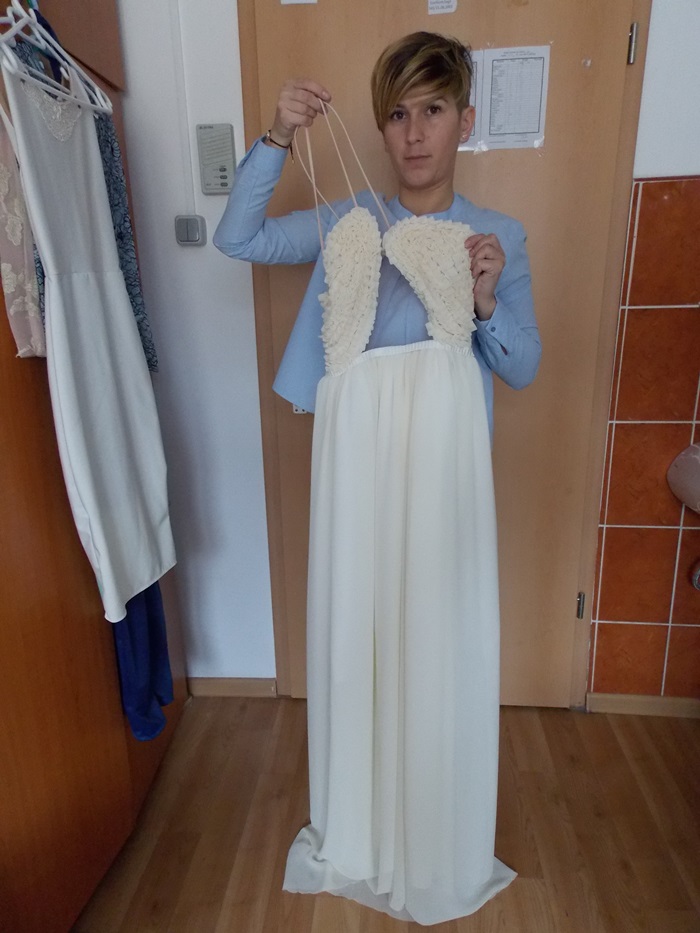 Niciodata nu va uita creatia sa de debut, o rochie spectaculoasa pe care a realizat-o cu multa atentie. Rochia de banchet.
