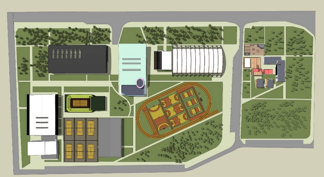 Totodata, locul va fi protejat de o perdea verde ce se va amenaja pe lungimea drumului județean până la intrarea în complexul sportiv care va avea, de asemenea, spatii verzi generoase.