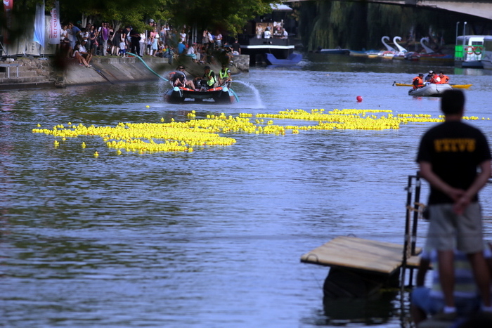 TIMISOARA. Emotii mari pentru timisorenii veniti in numar destul de mare pe malurile Begai, duminica dupa-amiaza. Cel mai asteptat moment a fost cursa ratustelor, iar participantii au asteptat cu sufletul la gura sa afle care a fost cea mai rapida ratusca.