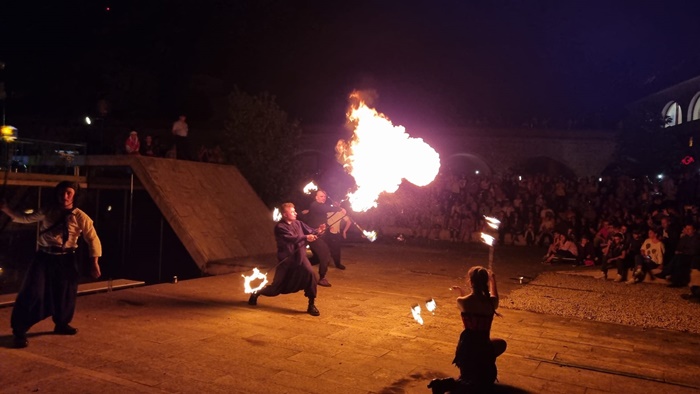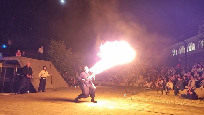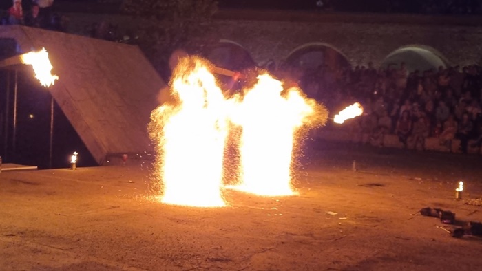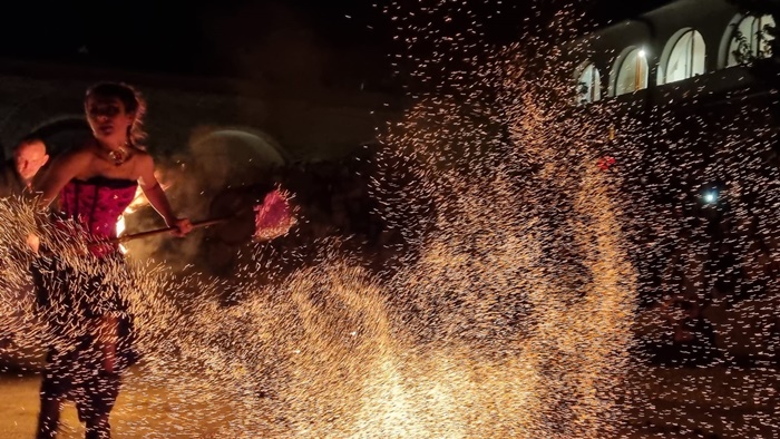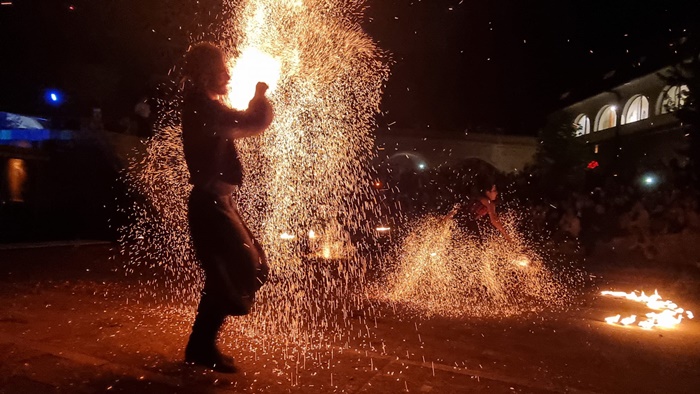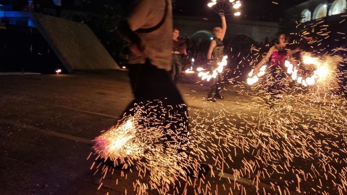 Reprezentatia de teatru pirotehnic s-a numit “Basme de foc” si a fost oferita de trupa Amor Flammis.