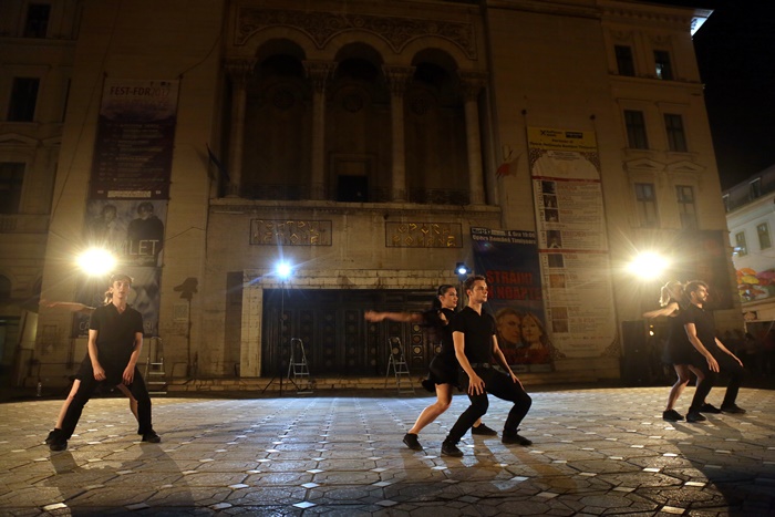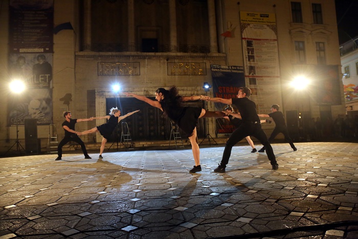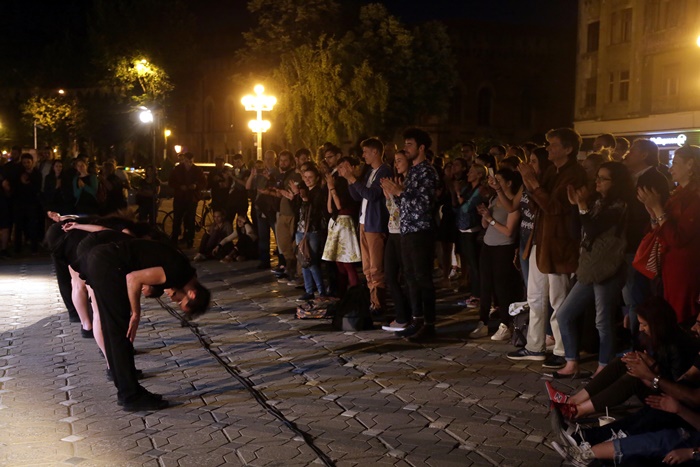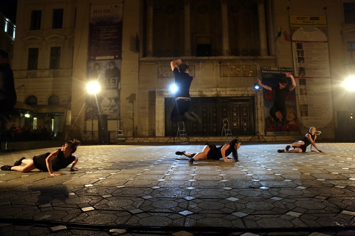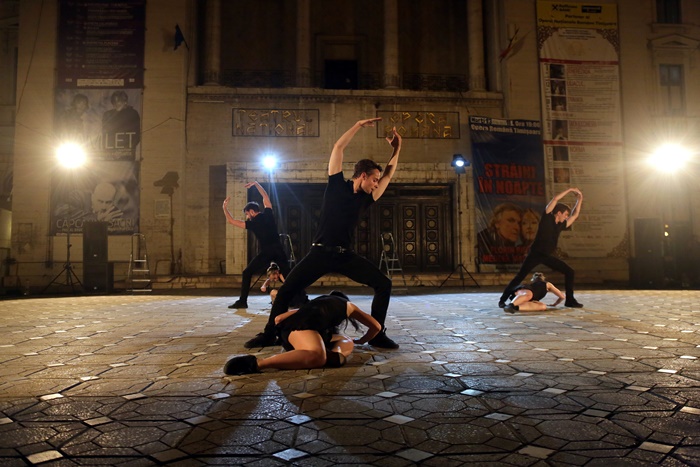 Spectatorii adunati in centrul orasului au fost martori ai G.U.I.D. – Groupe Urbain d’Intervention Dansée, extrase din creatiile lui Angelin Preljocaj