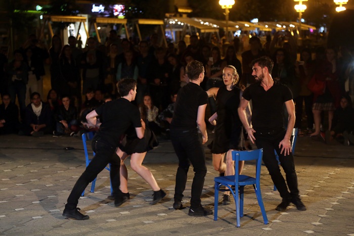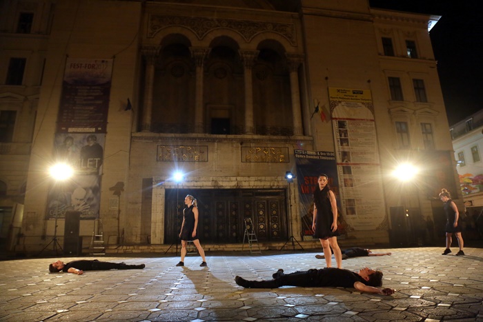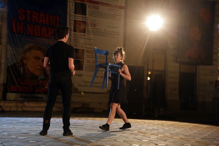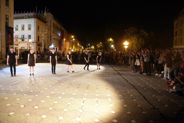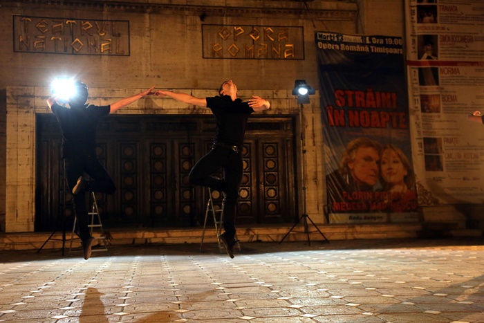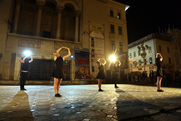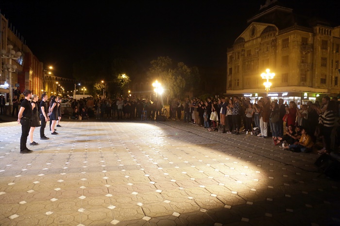 TIMISOARA. Platoul din Piata Victoriei din Timisoara s-a transformat din nou in scena, iar publicul a putut urmari o noua reprezentatie in cadrul Festivalului European al Spectacolului Timisoara – Festival al Dramaturgiei Romanesti, editia 2017.