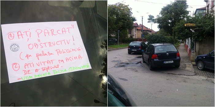 Cum autoturismul era parcat oricum ilegal, pe trotuar, dar si pe peluza clinicii, mai intai, oamenii i-au lipit in parbriz un biletel, in care il anuntau pe sofer ca incurca treburile.