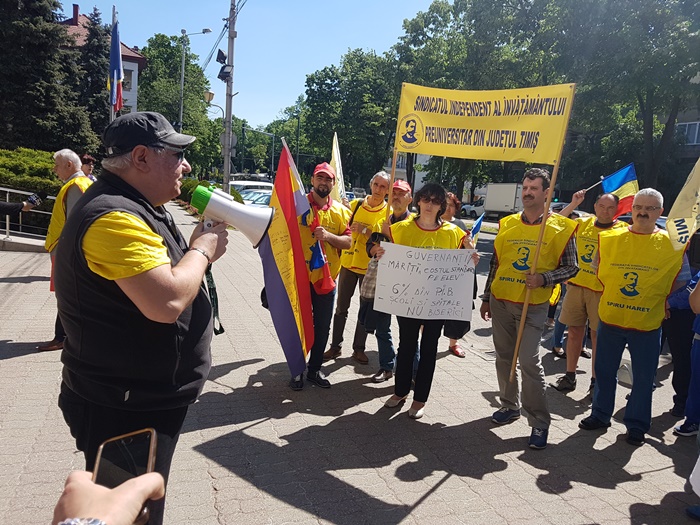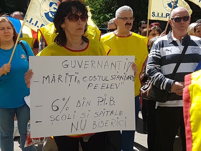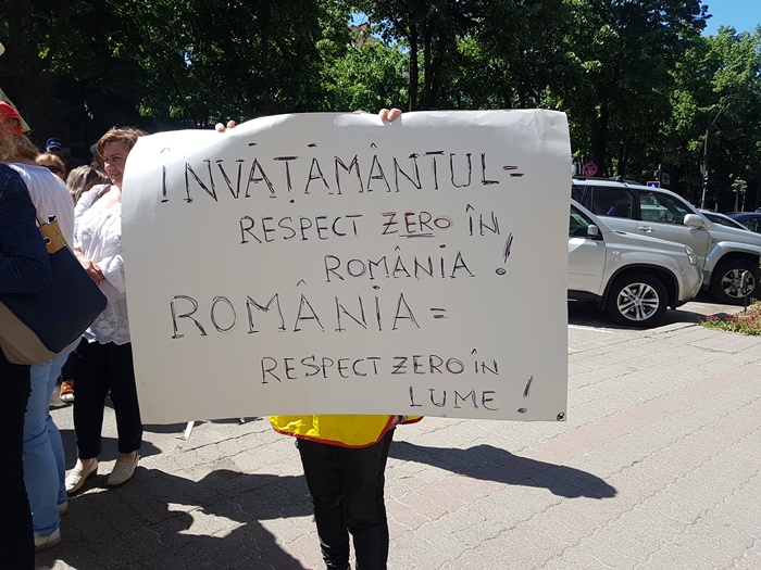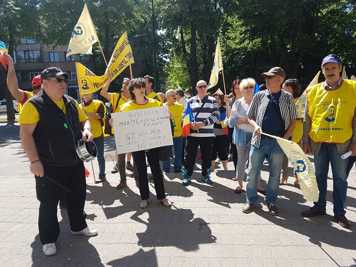 ‘Directorii au fost obligati sa reduca si au redus cu precadere de la personalul nedidactic. Personal care a fost si asa greu incercat. Au salarii foarte mici acum sunt singura categorie care nu a beneficiat de aceasta majorare de 20% cu care ne-au fost noua, personalul didactic, marite salariile. Avem nevoie de ei in scoli, noi trebuie sa intelegem ca trebuie sa fim o echipa, unii fara altii nu putem. Asta este cea mai mare problema a noastra. Degeaba au marit salariile daca acum vin cu constrangeri de natura financiara. La ora aceasta nu se pune problema sa ramanem fara ei, pentru ca au redus posturile vacante, dar daca nu se va da drumul la angajari in sistem normal, o sa ajungem noi, cadrele didactice, sa facem curatenie in toalete. Nu ca ar fi o rusine, dar totusi ar trebui sa ii avem si pe ei alaturi de noi’, a spus unul din dascalii veniti la protest.