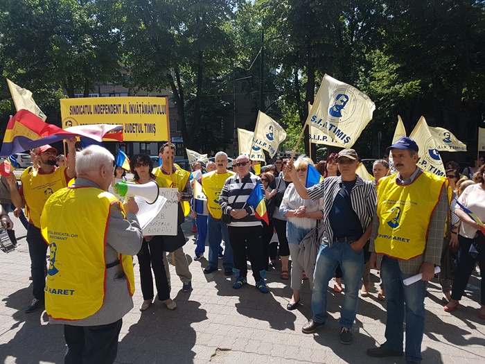 TIMISOARA. Cu tobe, steaguri si pancarte, dascalii din Timis au iesit in strada sa isi strige nemultumirile.