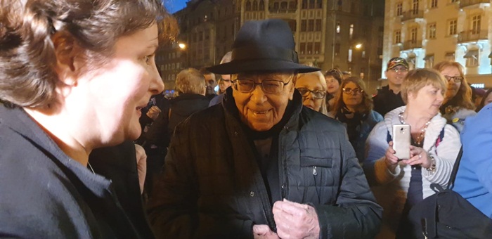 Alaturi de timisoreni, in jurul orei 20.00, si-a facut aparitia in Piata Operei si filozoful Mihai Sora, cel care a promis cu o zi inainte ca va veni la protest. Oamenii s-au adunat in jurul sau pentru a-i strange mana si a-i multumi pentru ca este alaturi de ei si lupta, la 102 ani de viata, pentru o altfel de Romanie. Scriitorul a vorbit despre justitie, dar si despre Laura Codruta Kovesi si interdictiile ce i-au fost impuse acesteia.