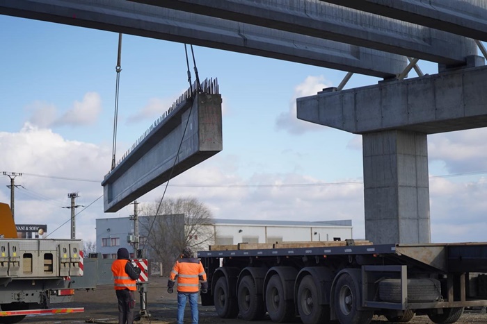 “In afara grinzilor de pe deschiderile principale, care vor fi amplasate ulterior, in aceste zile vor fi montate 32 de suprastructuri pe DN 59 Timisoara – Sag si in zona Chisoda. Numărul total de grinzi de pe centura Timisoara Sud va fi, la finalul lucrarii, de 235“, precizeaza reprezentantii Directiei Regionale de Drumuri si Poduri Timisoara.